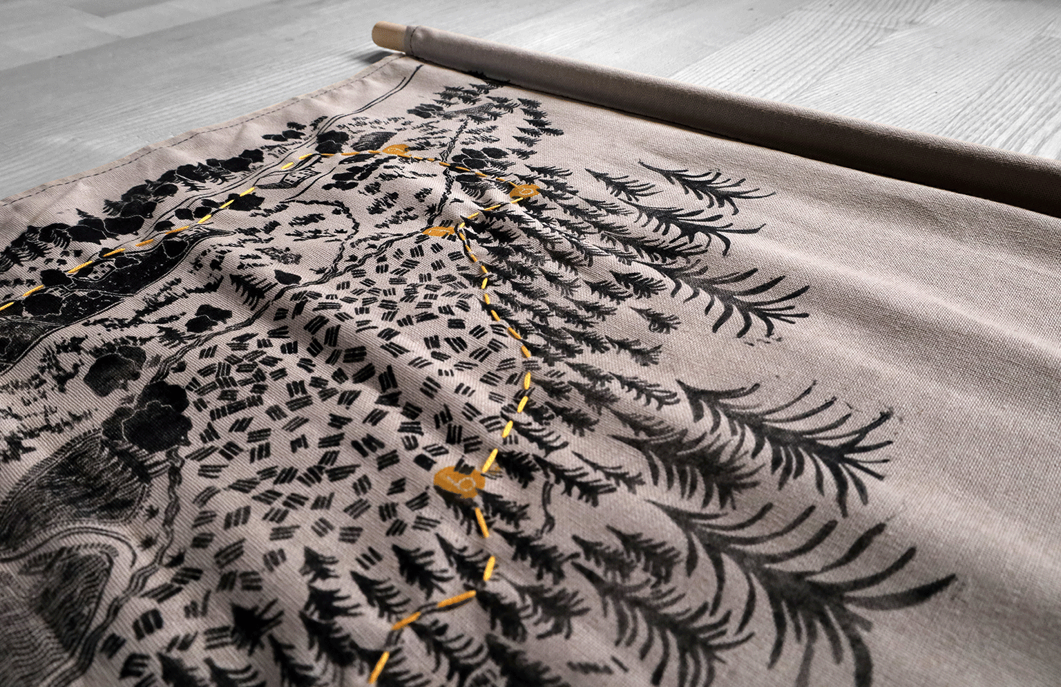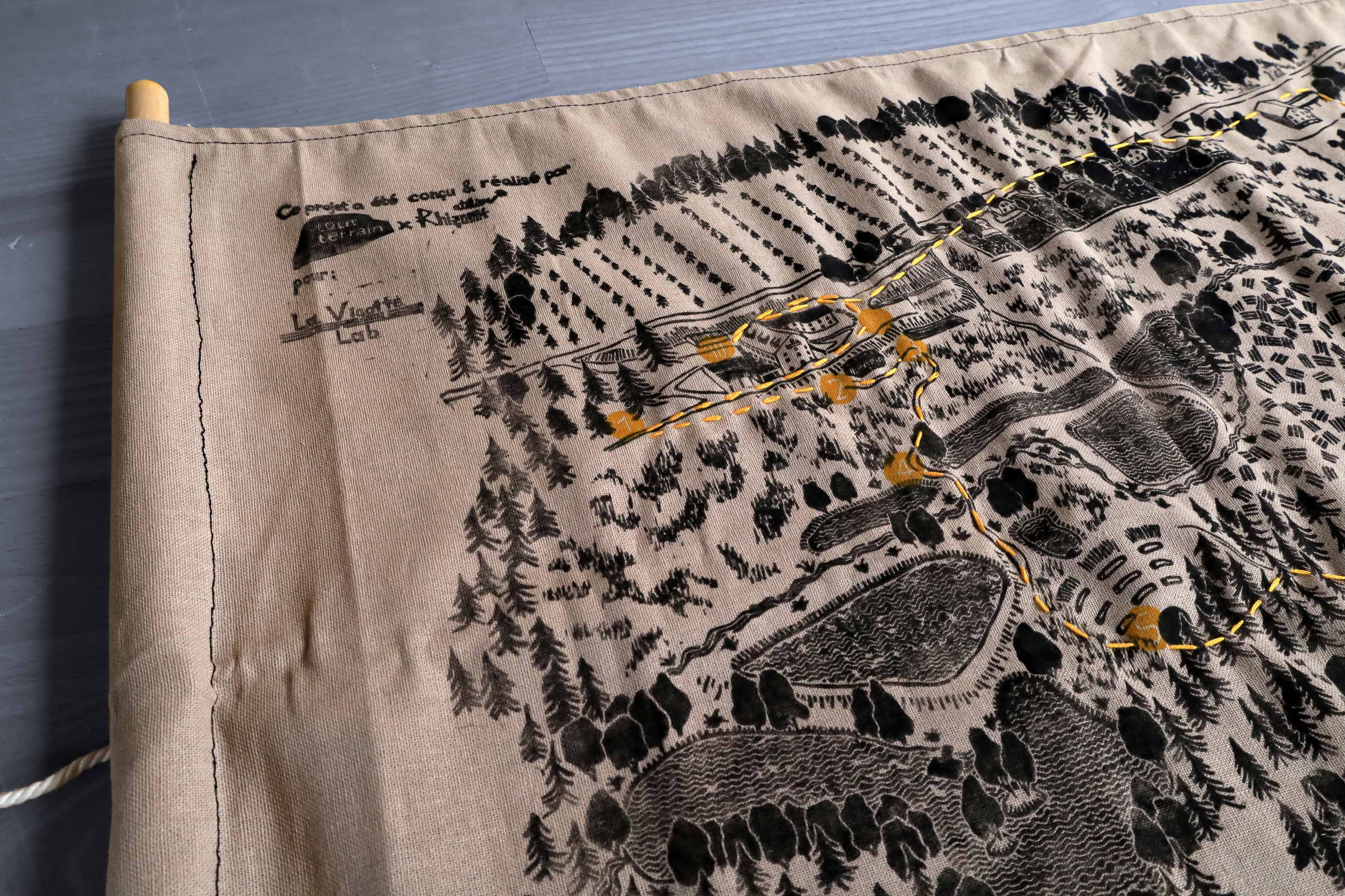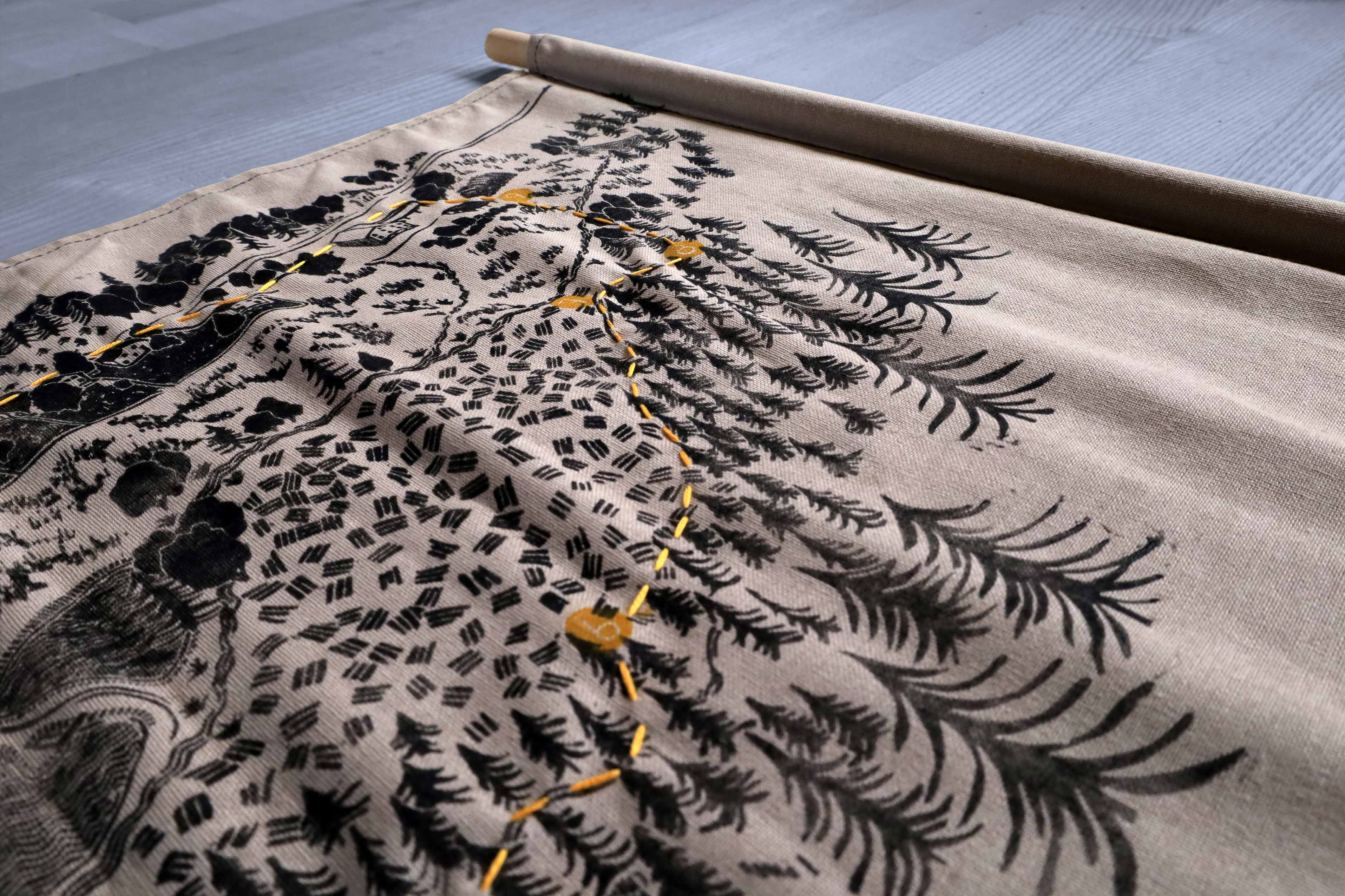 Réalisation de 10 cartes en tissus, imprimées en linogravure et brodées à la main.