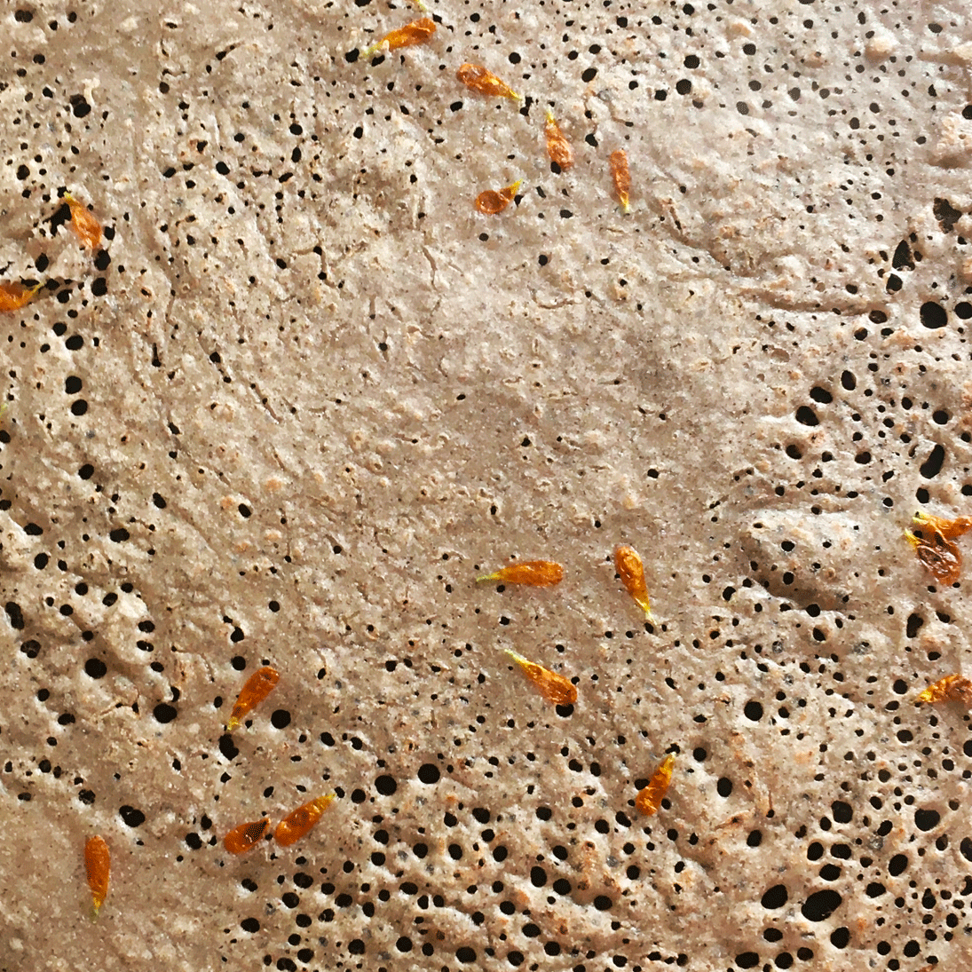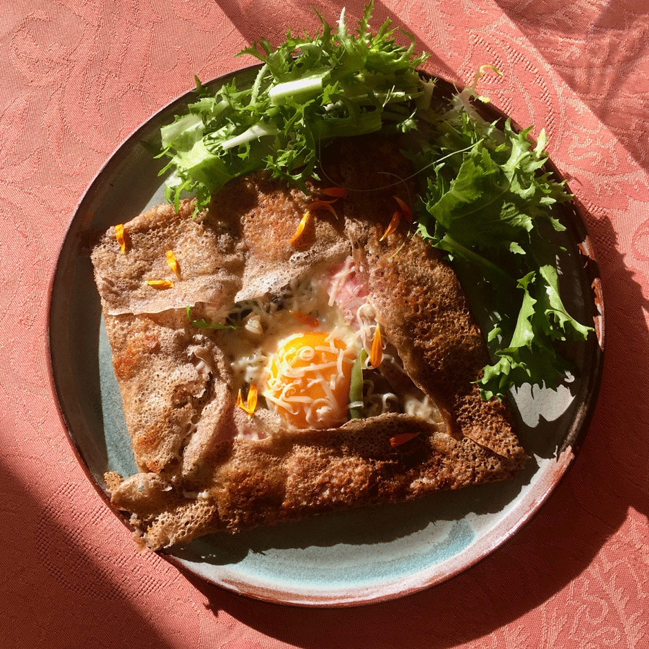 ↘ Éveillée par les délicieuses odeurs qui émanaient de la cuisine de ma mère, réveillée par les bruits des casseroles et ustensiles qui résonnaient dans la maison, depuis mes premières années, j’avais les doigts dans la pâte et la frimousse au-dessus des casseroles. La cuisine est une expression inhérente à ma pratique, elle m’a guidée vers le paysage, sa compréhension, sa dégustation, sa cueillette.