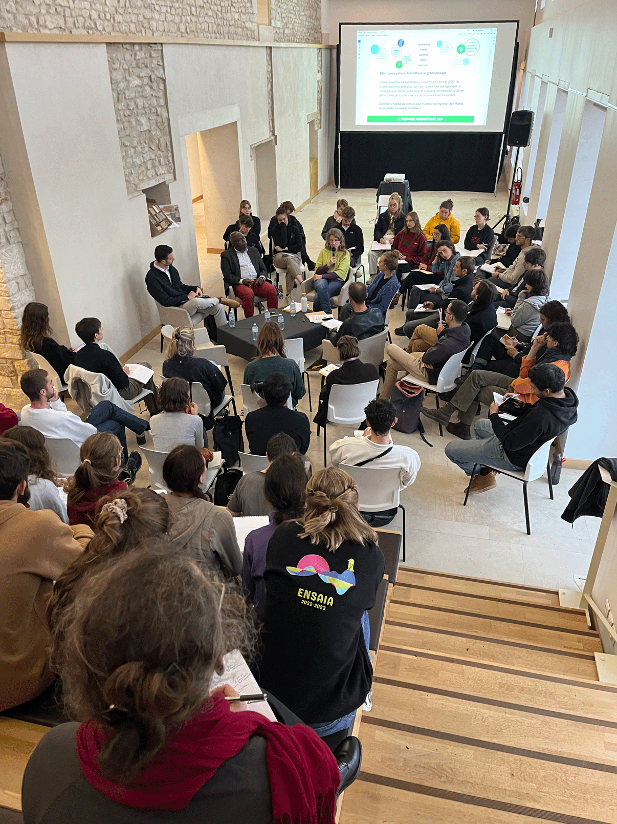 De l’architecture écologique à la gestion durable des forêts, de la polyculture élevage productrice de matériaux de construction et la construction ossature bois, les étudiants ont découverts à la fois l’univers des matériaux biosourcés, géosourcés, et ce que cela implique de penser une filière locale à toutes ses