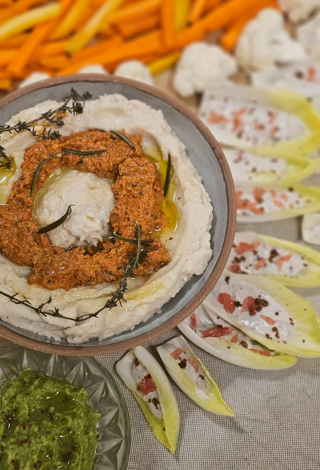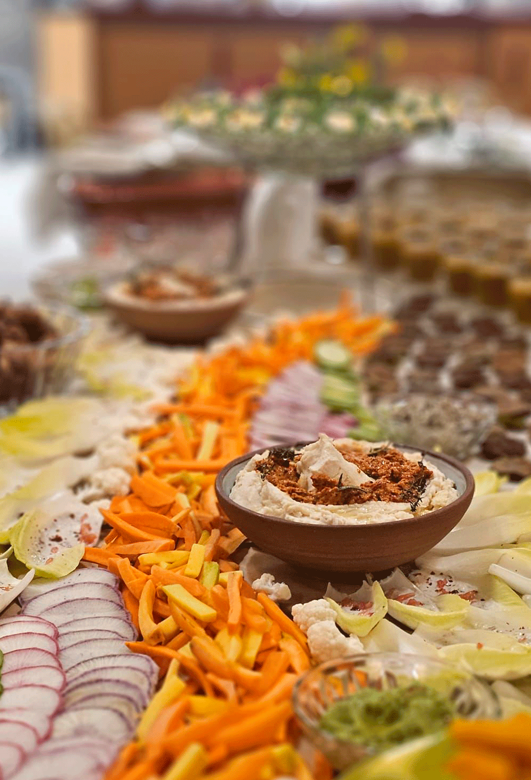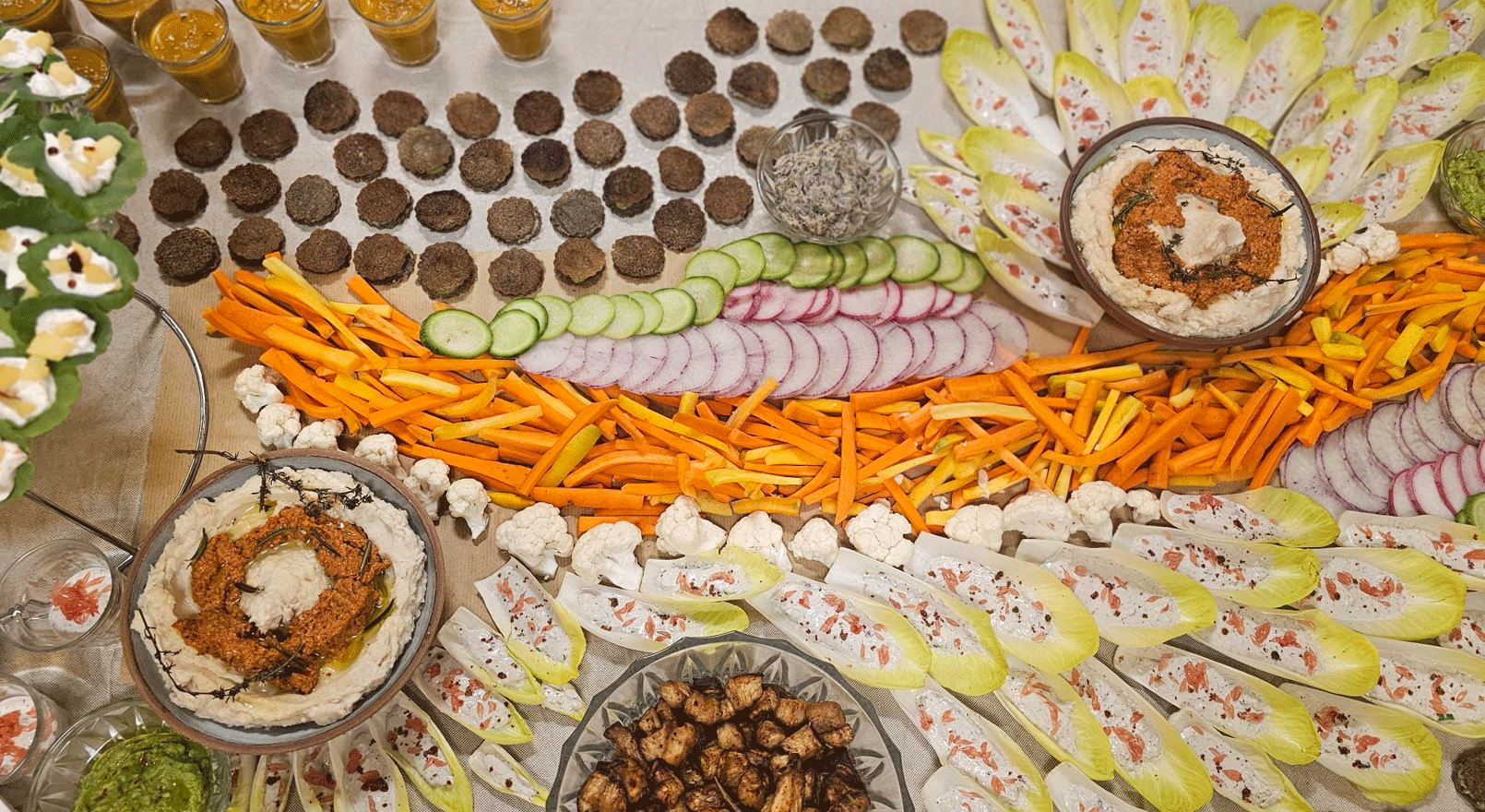 Mise en scénographie de la table tel un tableau de paysage.